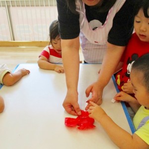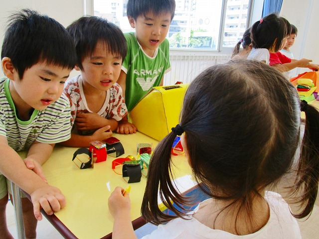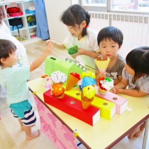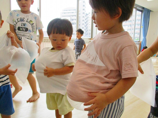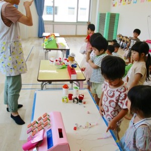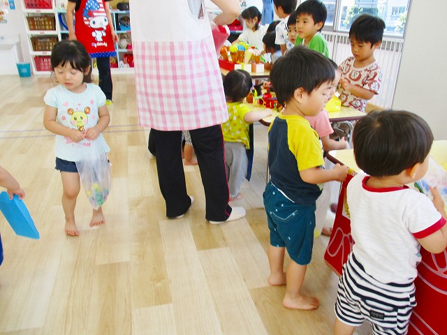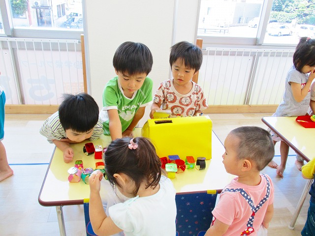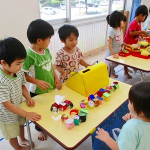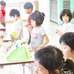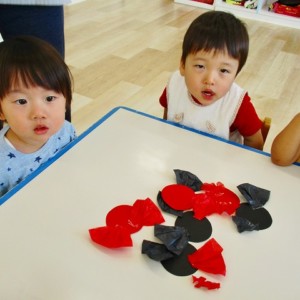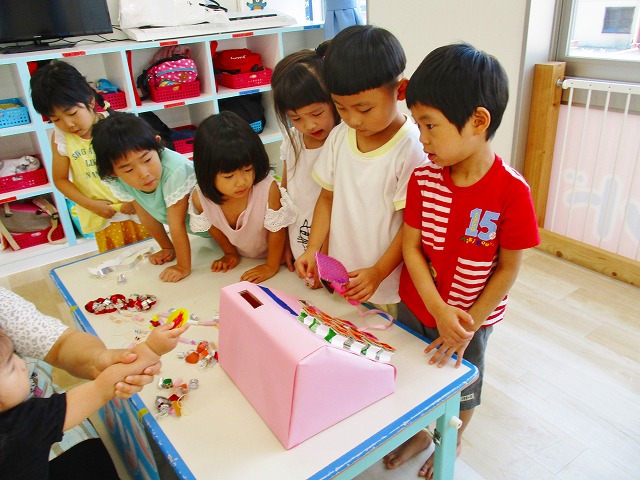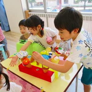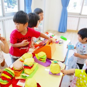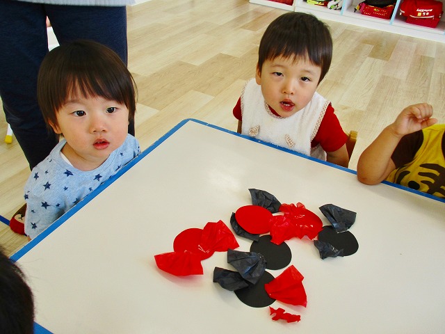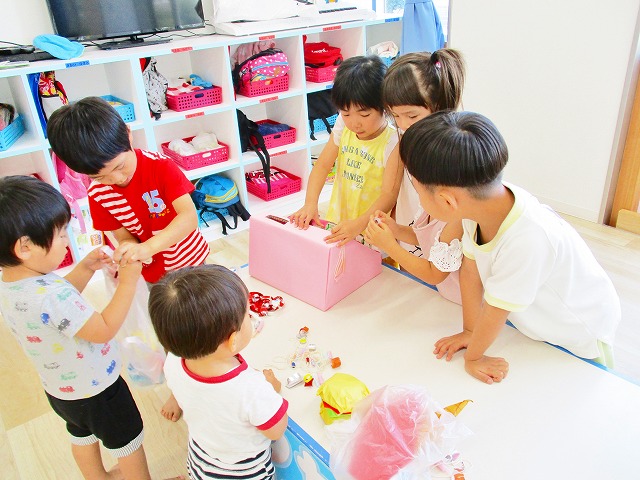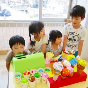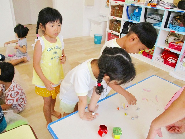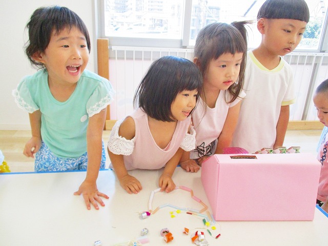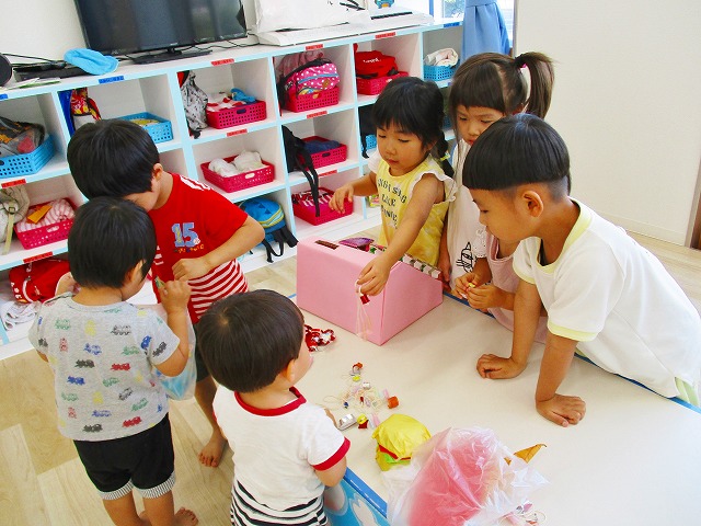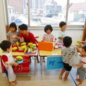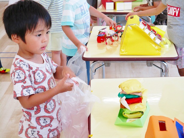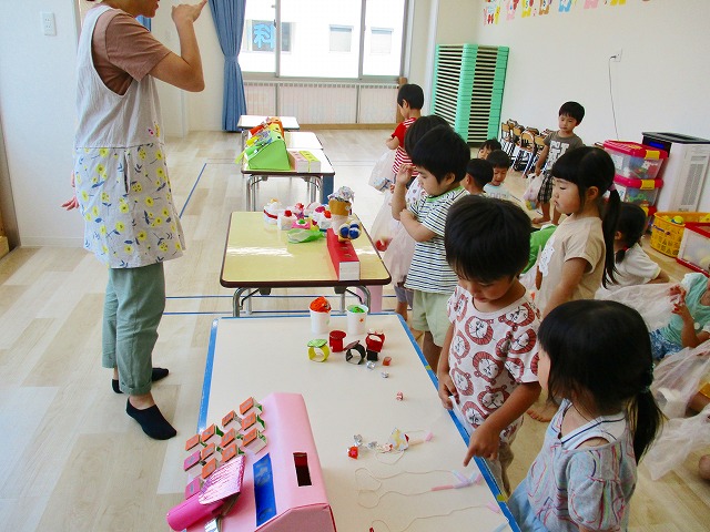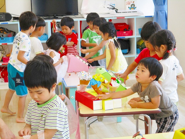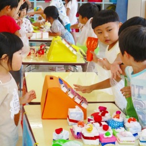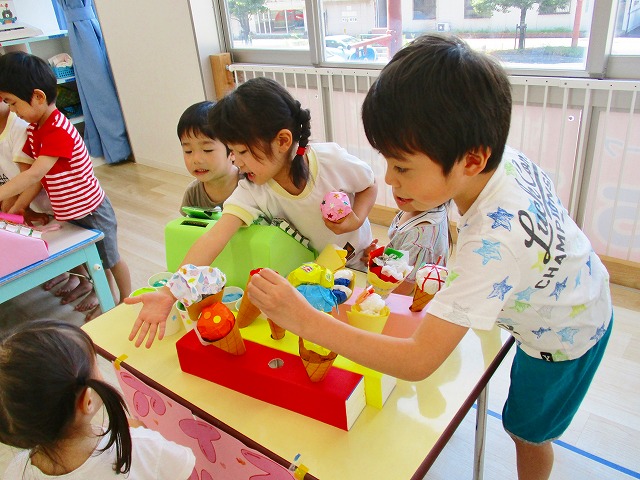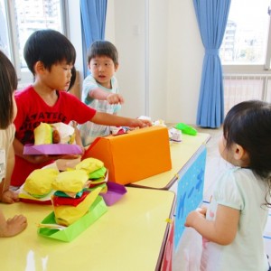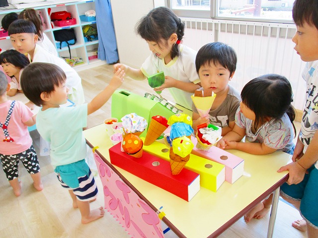 保育参観の時に、ぞうのお部屋でやった「お買い物ごっこ」を今度は、自分たちで商品をつくって、うさぎのお部屋のお友だちをご招待✨「いらっしゃいませ!!」元気いっぱいの店員さんたちに、小さいお友だちは、ちょっとびっくりしちゃってましたが、嬉しそうにお買い物してくれましたよ!!