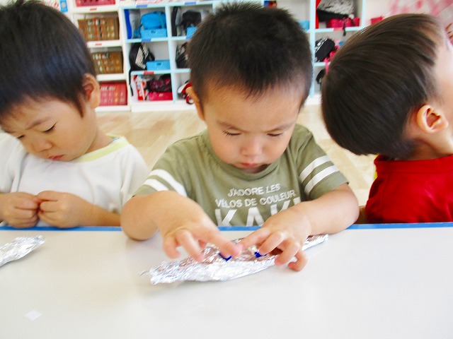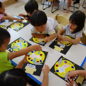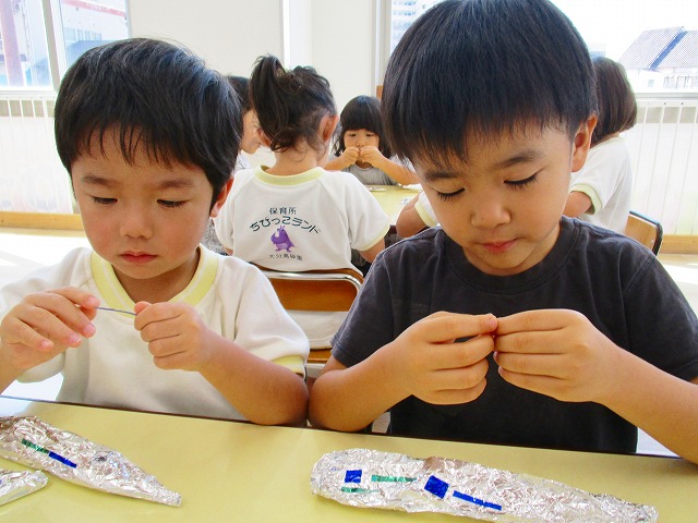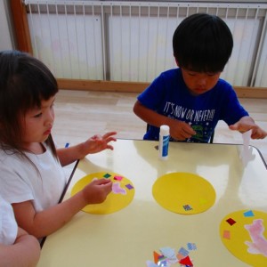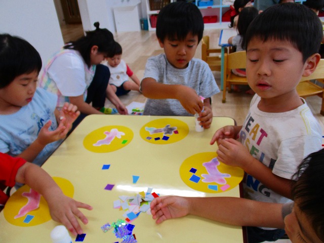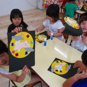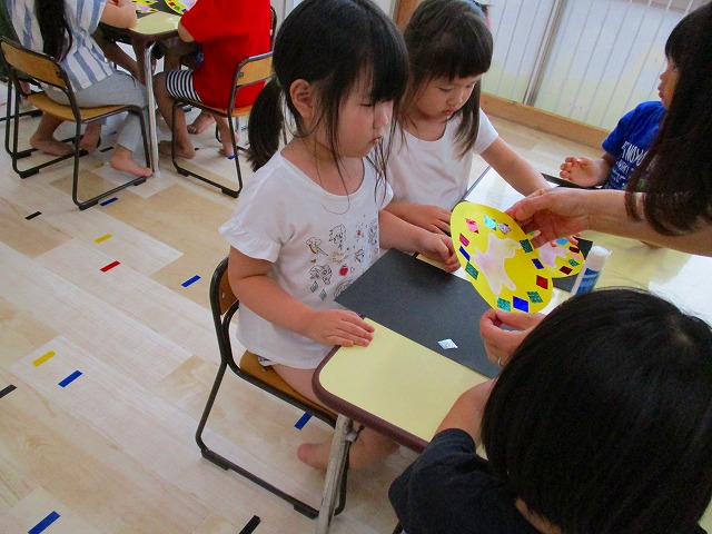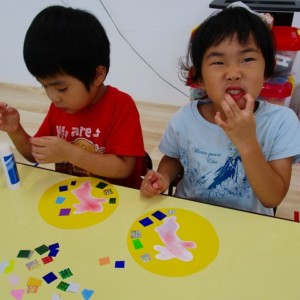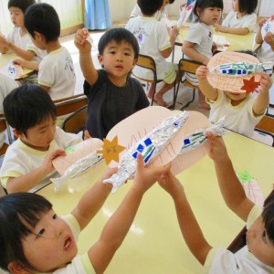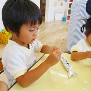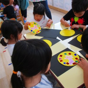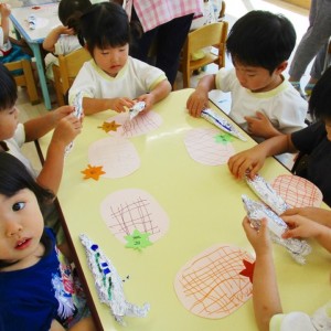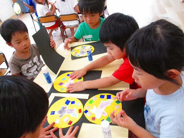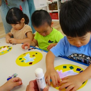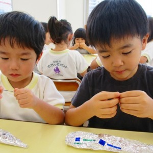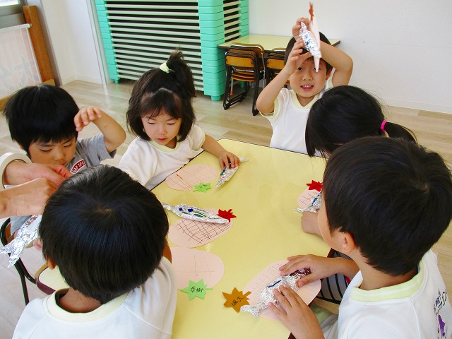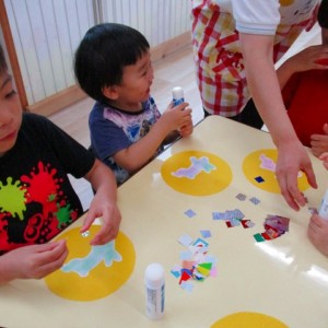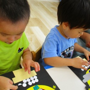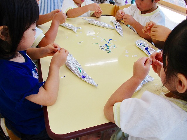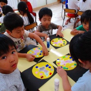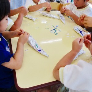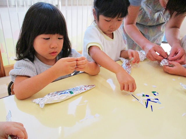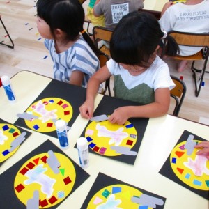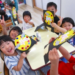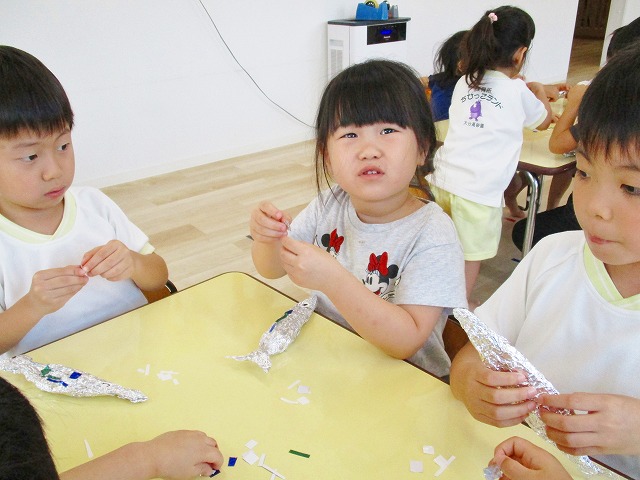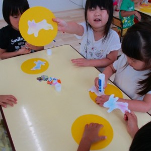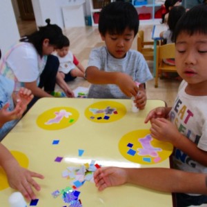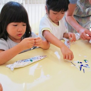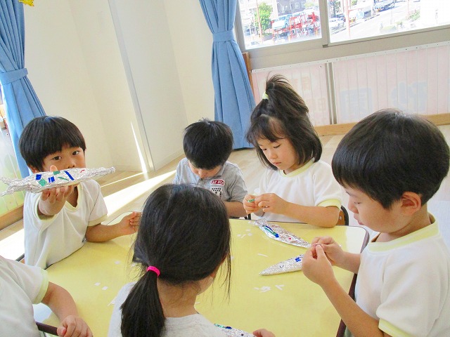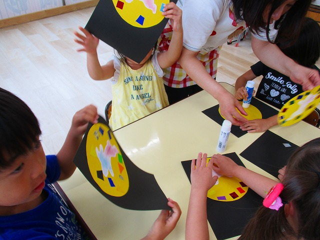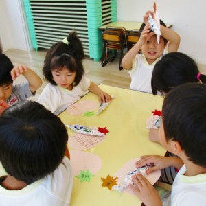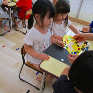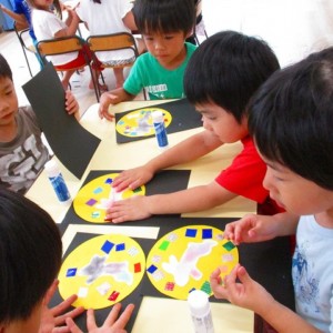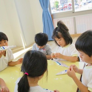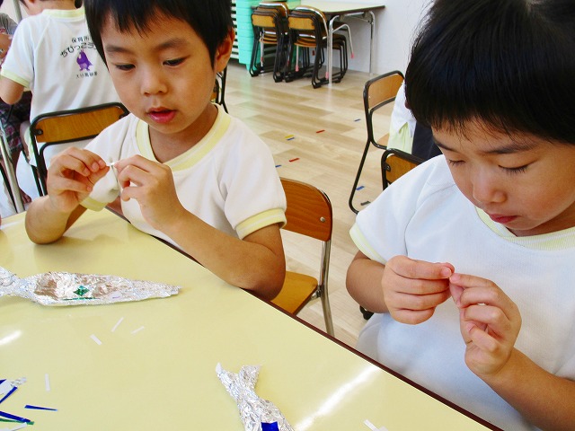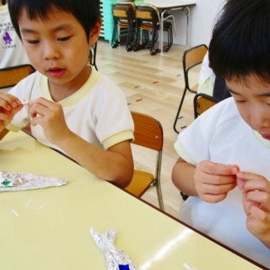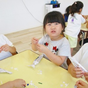 製作の時間は、みんな真剣!!きちんと先生のお話を聞いて、ひとつずつ工程を進めていきます。わからないお友だちに優しく教えてくれるお兄さん、お姉さんの姿も・・・