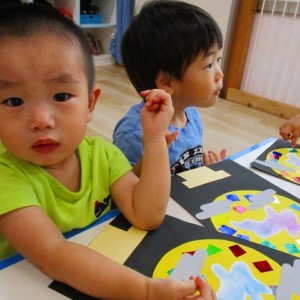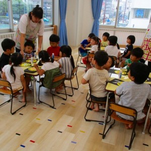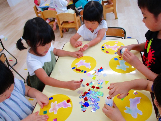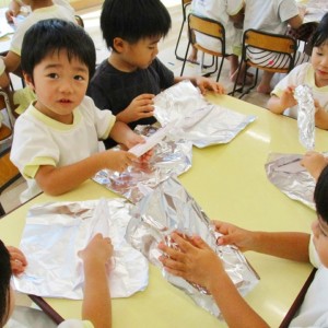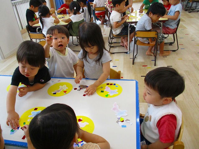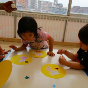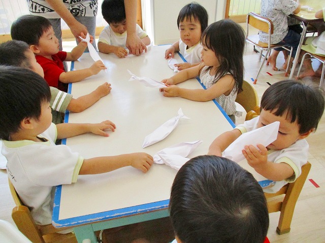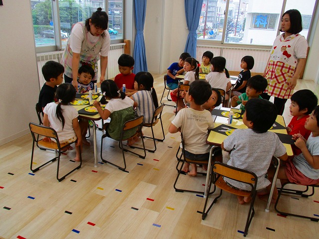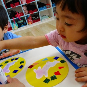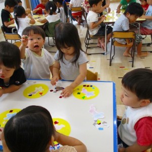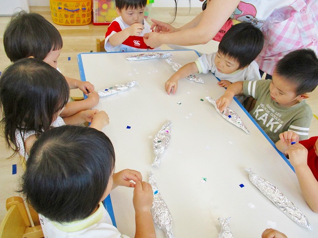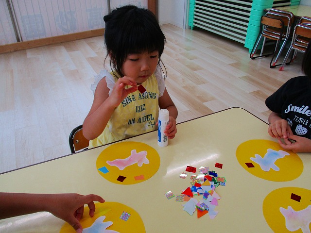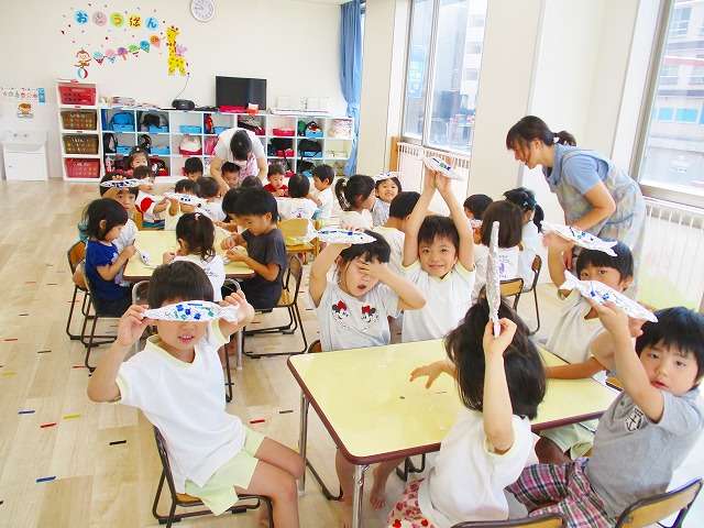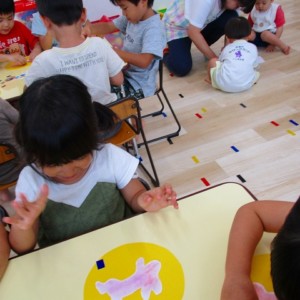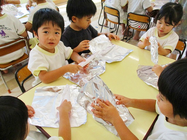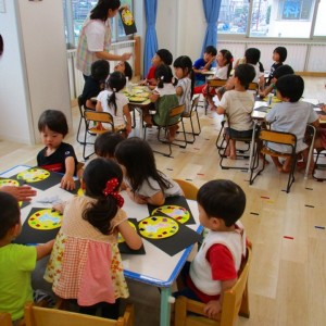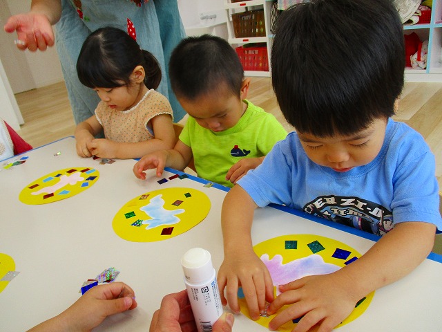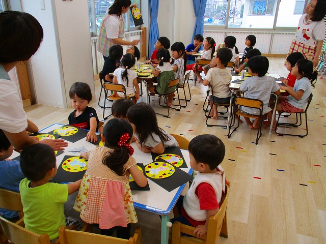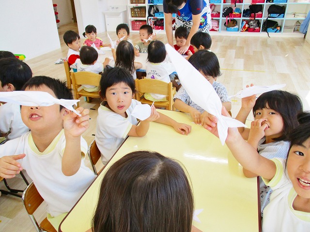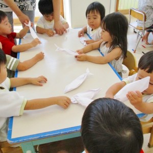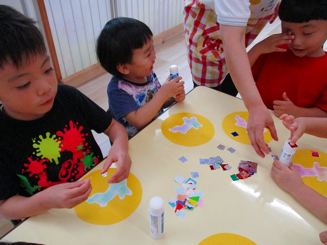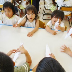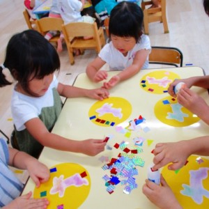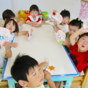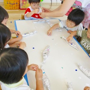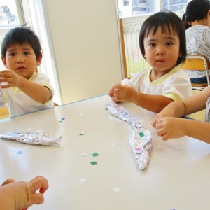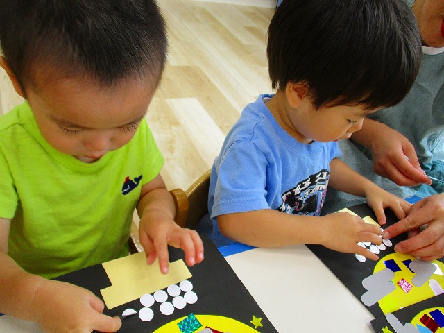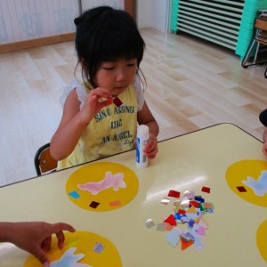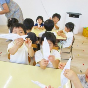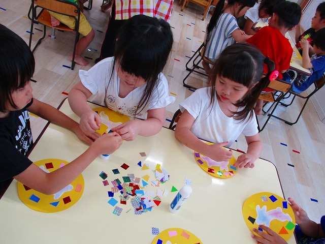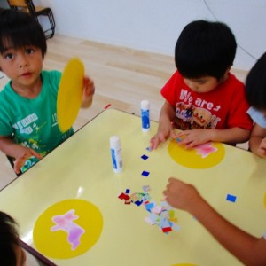 製作の時間は、みんな真剣!!きちんと先生のお話を聞いて、ひとつずつ工程を進めていきます。わからないお友だちに優しく教えてくれるお兄さん、お姉さんの姿も・・・
