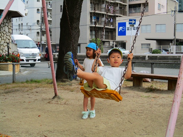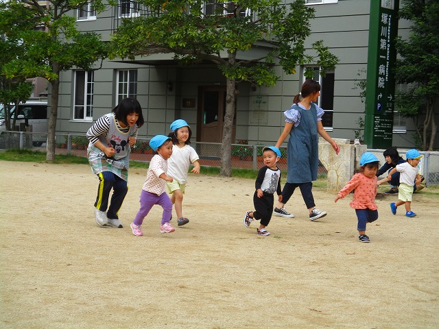 お天気の良い日には公園へ 走り回って鬼ごっこしたり、遊具も上手に貸し借りして元気いっぱいに遊んでいますよ♫