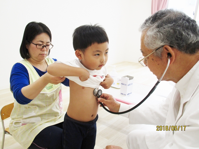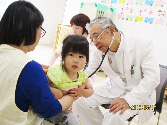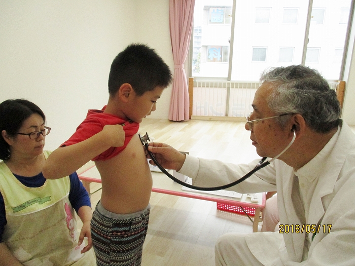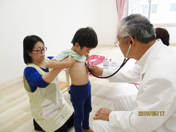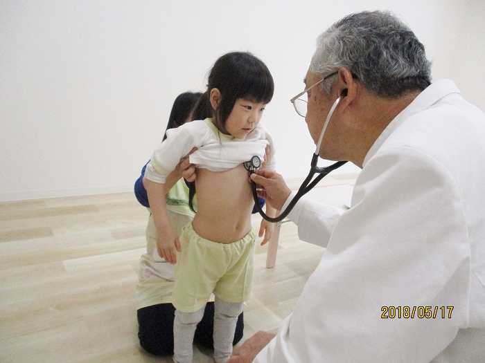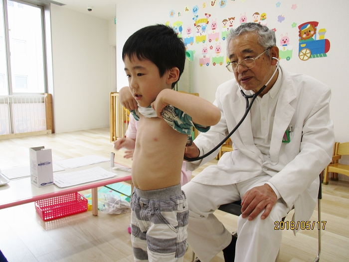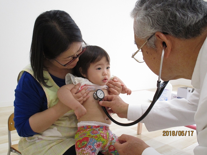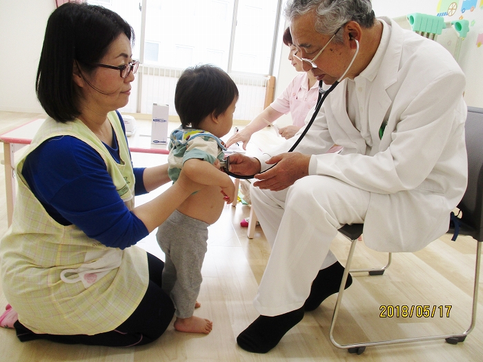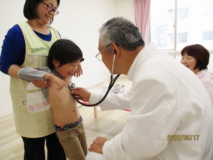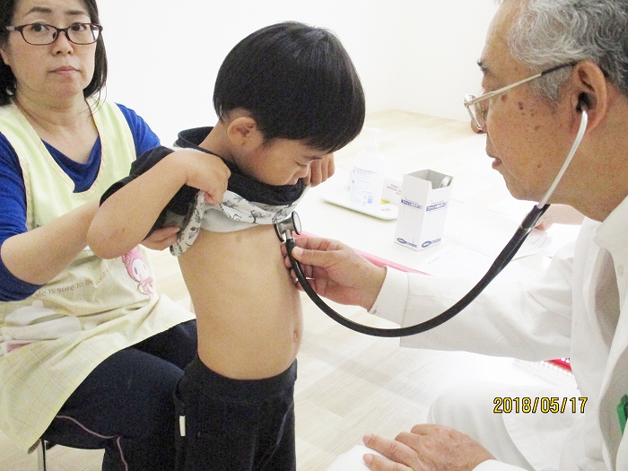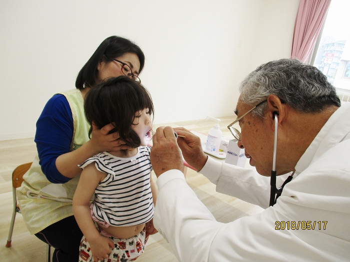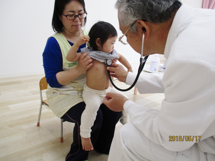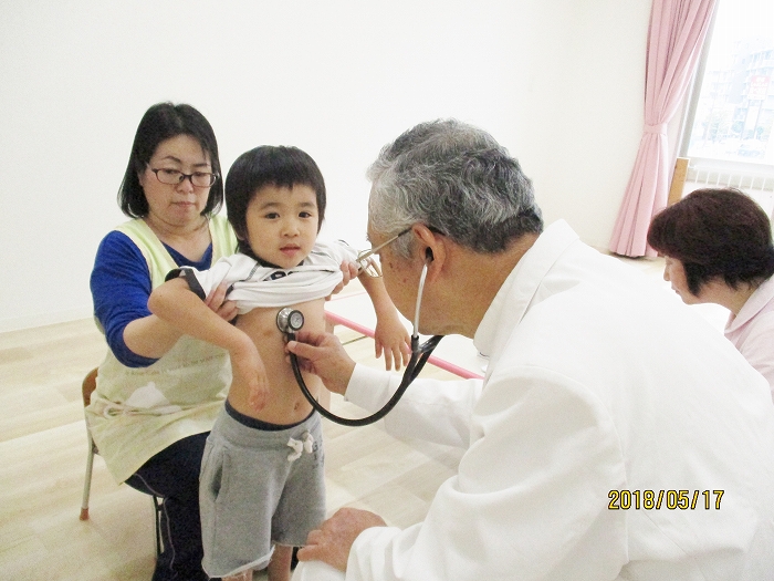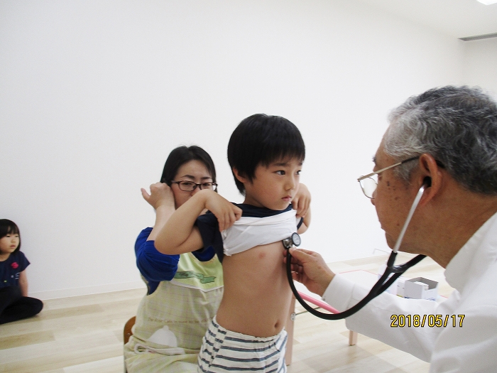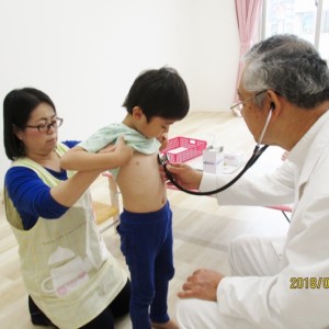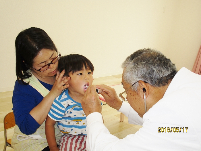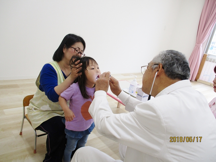 5月の内科・歯科検診を行いました。お医者さんは全然怖くないんだけど、大人だって白衣恐怖症といってお医者さんを見ると動機息切れが激しくなる人もいるくらい、子どもたちにとってはなおさらですね。毎回のことだけど、やっぱり泣いちゃう子もいました。でもみんなの健康を守るためだから、頑張って!