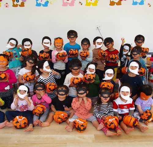 みんなでジャック・オー・ランタンのバックを作りました。おうちで「トリック オア トリート」を言ってお菓子もらえたかな~?